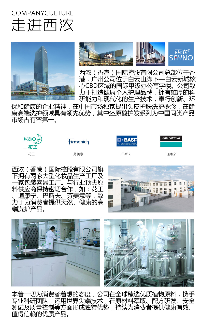西浓化妆品企业介绍,花王,芬美意,巴斯夫,道康宁,原材料萃取,配方研发,健康安全,头皮护肤,广州西浓化妆品有限公司